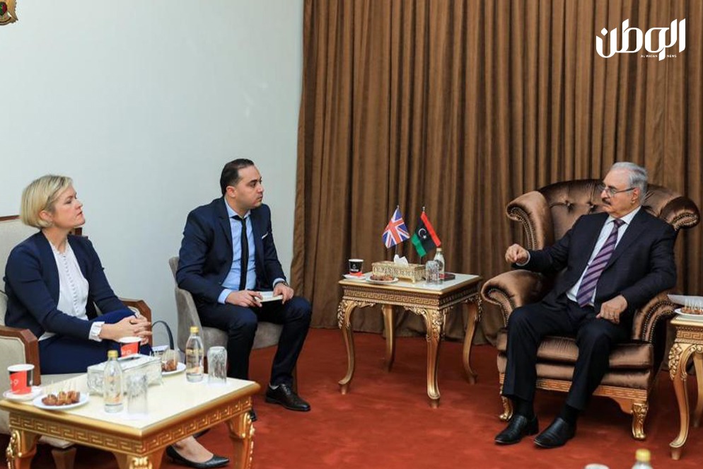 التقى القائد العام للقوات المسلحة المشير خليفة حفتر، بمكتبه بالرجمة اليوم الأحد، بسفيرة بريطانيا لدى ليبيا، كارولين هورندل.