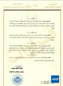 أصدر مجلس النواب قراراً يقضي بتشكيل لجنة تتكون من 12 عضواً، وذلك لمراجعة المواد الخلافية بمشروع الدستور.