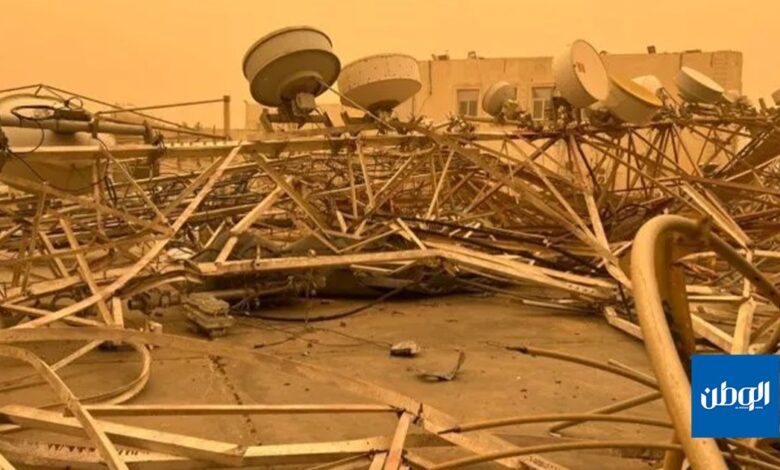 في بيان على صفحتها عبر الفيسبوك، قالت الشركة القابضة للإتصالات أن سقوط أحد أهم أبراج الاتصالات في المنطقة الغربية بمدينة الزاوية بسبب العاصفة الرملية التي شهدتها ليبيا الخميس، ادى الى تذبب الخدمات المقدمة من الشركة.