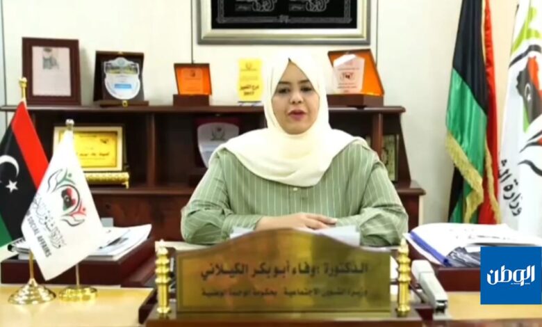 أكدت وزيرة الشؤون الاجتماعية، بالحكومة المنتهية الولاية وفاء الكيلاني، خلال لقائها وفدا من أعيان ومشائخ تاورغاء ،اهتمامها بالأسر النازحة، و شكلت لجنة لحصر نازحي تاورغاء في مخيمات طرابلس، ومتابعة فريق الدعم النفسي التابع للوزارة لأطفال المخيمات، ووعدت بأن تسعى لحلحة العديد من المشاكل التي تعيق عودة النازحين، حسب ما قالته.
