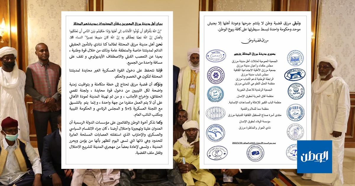 أهالي وأعيان “مرزق المحتلة” في بيان قوي: نرفض “الخصم والحكم”