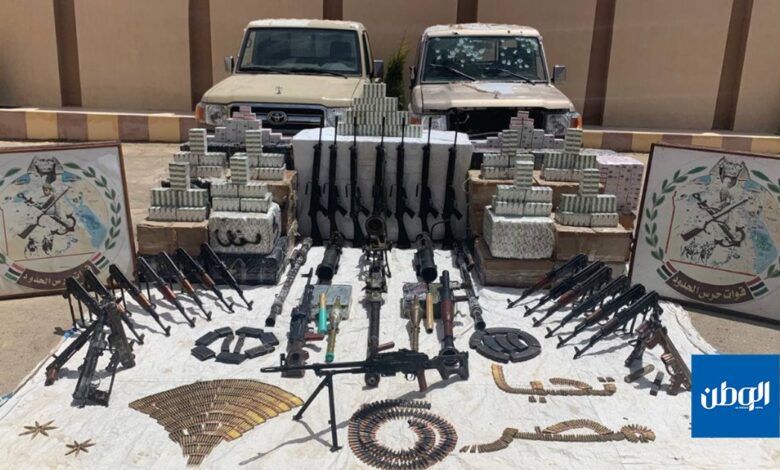 احباط عملية تهريب شحنه كبيرة من الأسلحة ومخدرات قرب الحدود الليبية