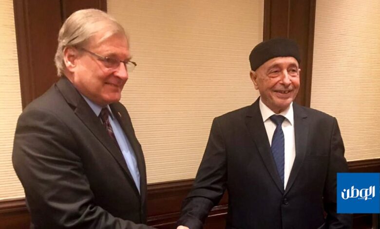 قال السفير الأمريكي لدى ليبيا ريتشارد نورلاند إنه التقى اليوم بالقاهرة رئيس مجلس النواب عقيلة صالح، لمناقشة آخر التطورات المتعلقة بالانتقال السياسي في ليبيا، في الوقت الذي يستعد فيه المجلس لمناقشة ميزانية وطنية جديدة.