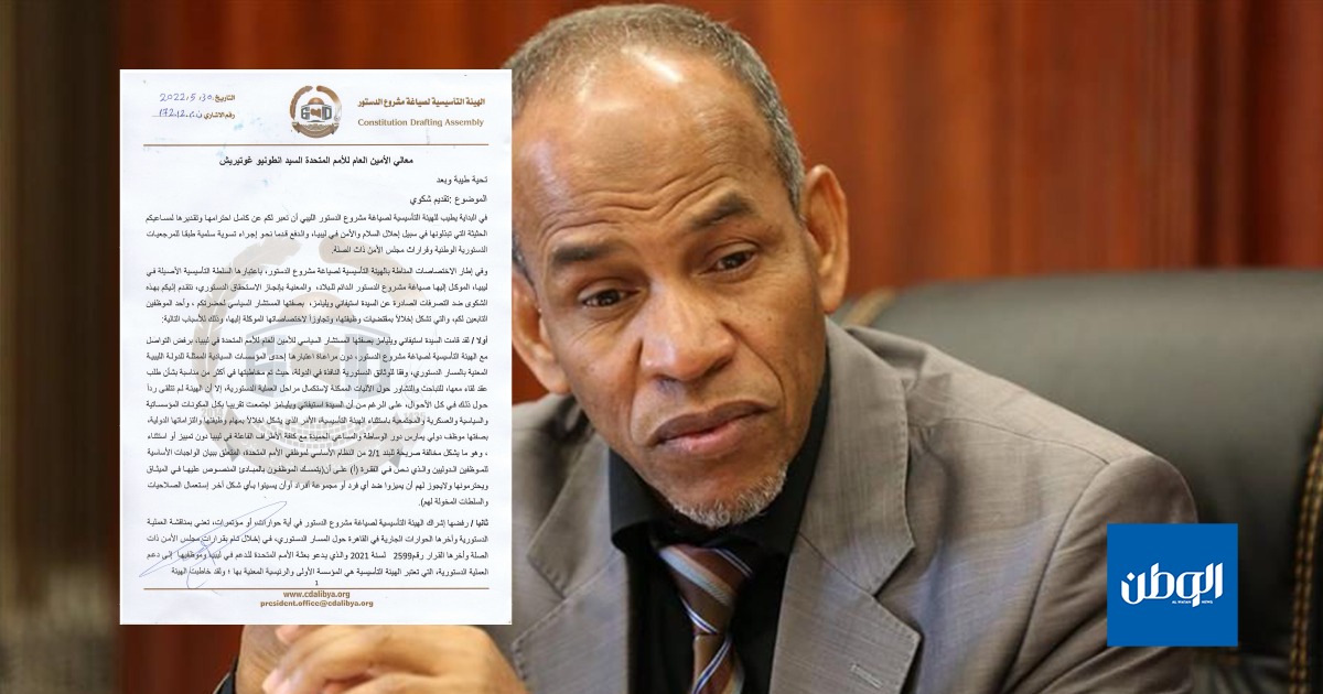 تقدم رئيس الهيئة التأسسية لصياغة مشروع الدستور الجيلاني اروحومة بشكوى الى الامين العام للامم المتحدة انطونيو غوتيرش وذلك ضد تصرفات المستشارة الأممية في ليبيا ستيفاني ويليامز