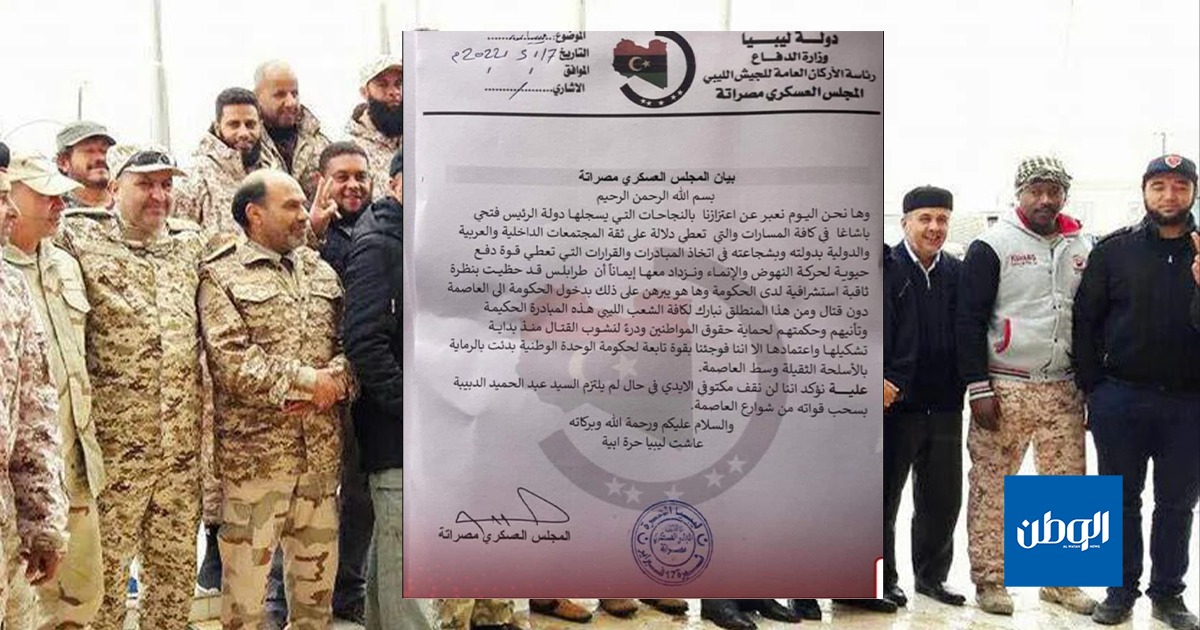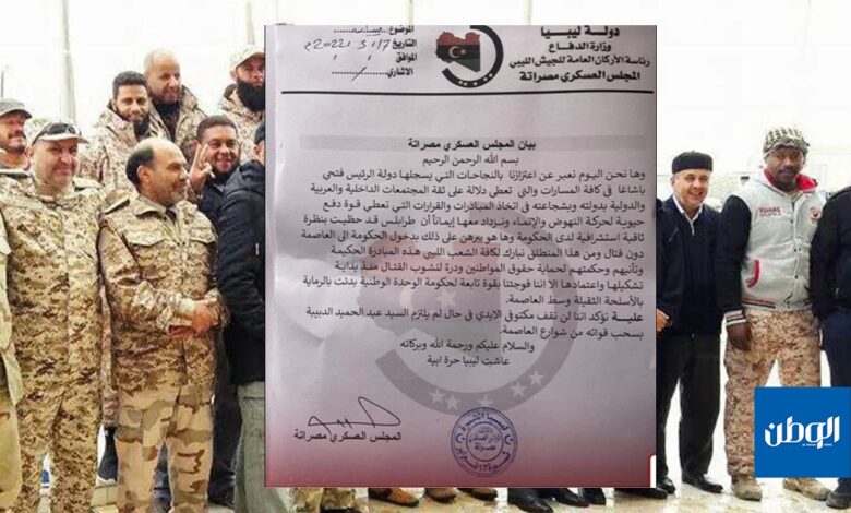 المجلس العسكري مصراتة يحذر حكومة الدبيبة من استمرار العنف في طرابلس