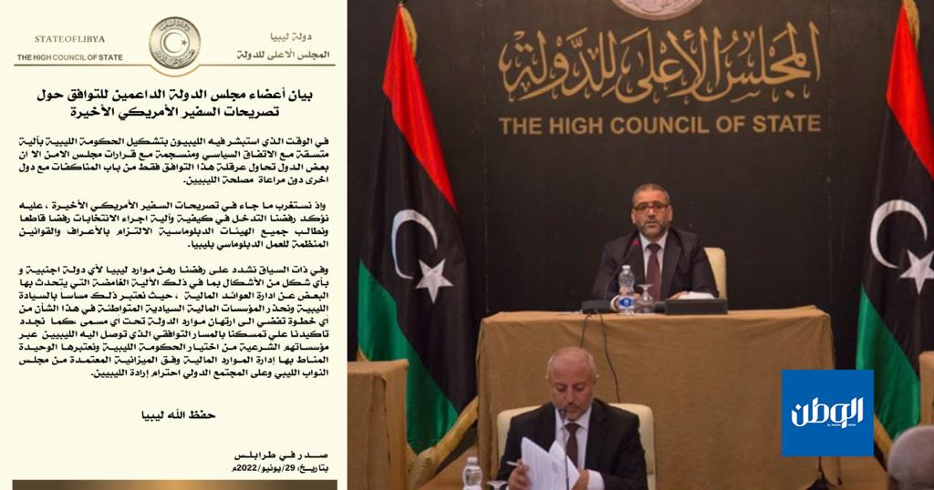 استغرب أعضاء مجلس الدولة الداعمين للتوافق تصريحات السفير الأمريكي في ليبيا ريتشارد نورلاند، مؤكدين رفضهم التدخل في كيفية والية اجراء الانتخابات في ليبيا.