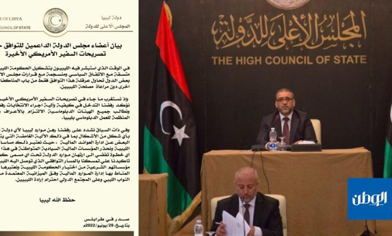 استغرب أعضاء مجلس الدولة الداعمين للتوافق تصريحات السفير الأمريكي في ليبيا ريتشارد نورلاند، مؤكدين رفضهم التدخل في كيفية والية اجراء الانتخابات في ليبيا.
