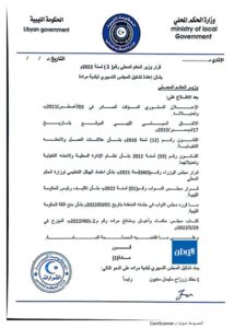أصدر وزير الحكم المحلي بالحكومة الليبية سامي الضاوي، قرارا اليوم الخميس لإعادة تشكيل المجلس التيسيري لبلدية مرادة، وذلك بعدما التقى وفد من أعيان مرادة وأعضاء مجلسها البلدي مع رئيس الحكومة منتهية الولاية عبد الحميد الدبيبة في طرابلس قبل يومين.
