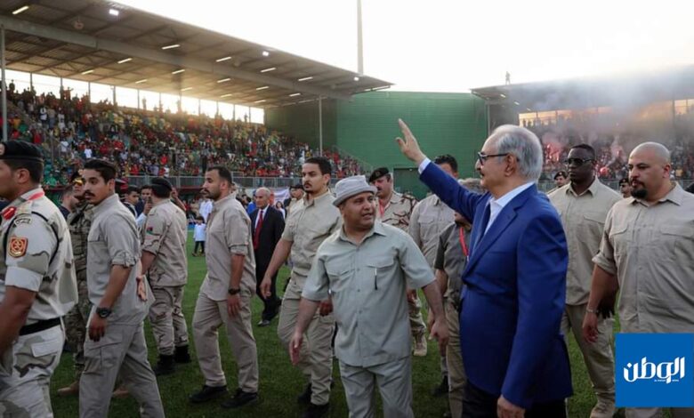 حضر القائد العام للقوات المُسلحة العربية الليبية المُشير أركان حرب “خليفة ابو القاسم حفتر”، جانبا من الاحتفال بالذكرى الثامنة لثورة الكرامة، الذي أقيم بملعب شهداء بنينا.