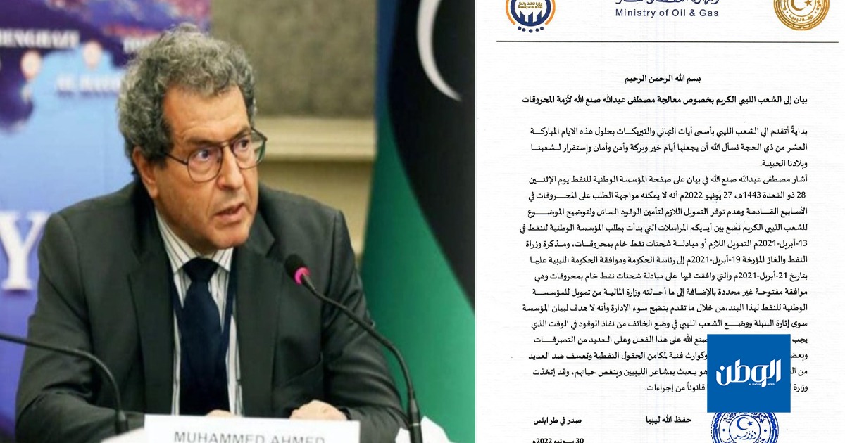 وعرضت الوزارة في بيان لها نسخًا من المراسلات بشأن تمويل أو مبادلة شحنات نفط خام بمحروقات، والتي بدأت بطلب المؤسسة الوطنية للنفط