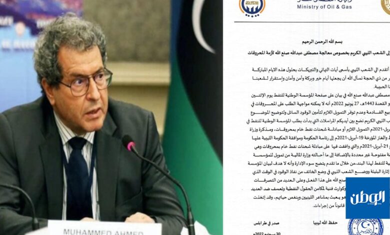 وعرضت الوزارة في بيان لها نسخًا من المراسلات بشأن تمويل أو مبادلة شحنات نفط خام بمحروقات، والتي بدأت بطلب المؤسسة الوطنية للنفط