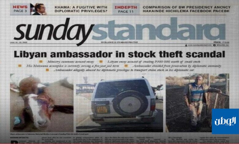 استدعت وزارة خارجية بوتسوانا مؤخراً سفير ليبيا المكلف من قبل منتهي الولاية عبد الحميد الدبيبة في جابورون العاصمة ، محمد مصباحه، للاستفسار عن مزاعم تواطئه في سرقة “ماعز” من أحد المزارعين المحليين.