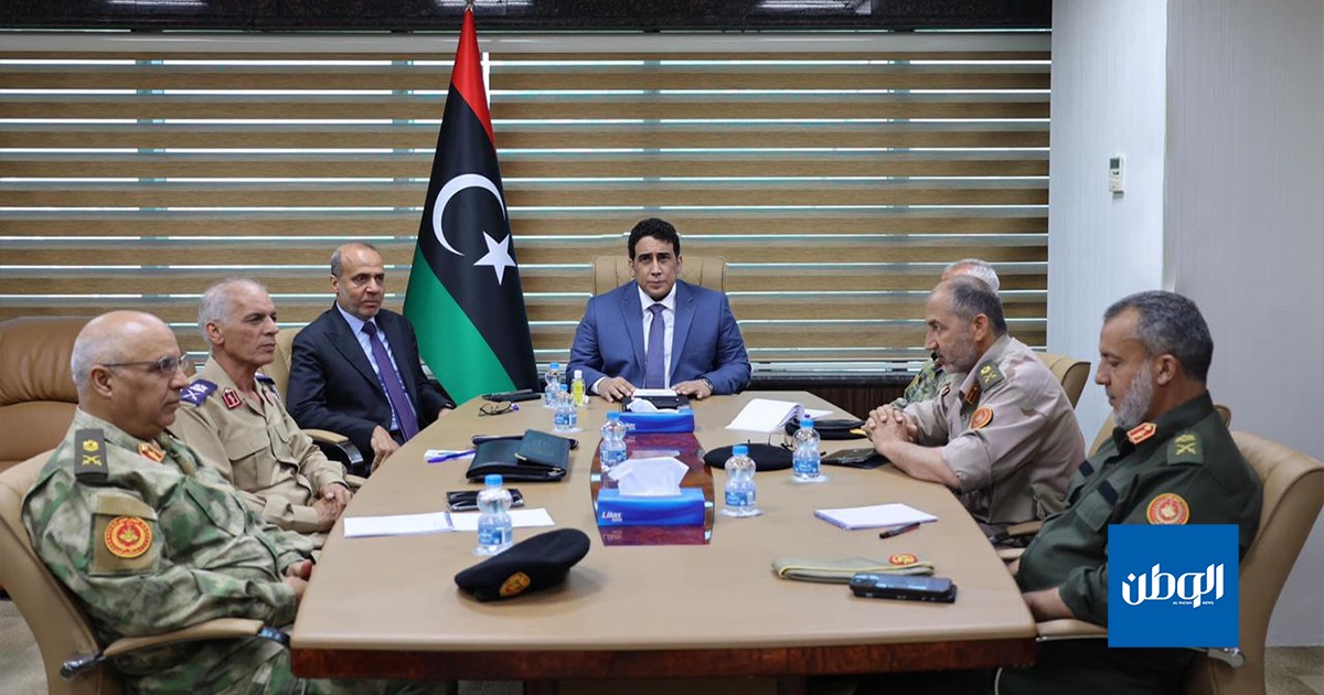 اجتمع رئيس المجلس الرئاسي، محمد المنفي، والنائب عبد الله اللافي، بصفتهما “القائد الأعلى للجيش الليبي”، صباح اليوم الأحد بديوان المجلس الرئاسي في طرابلس بأعضاء اللجنة العسكرية المشتركة 5+5، عن المنطقة الغربية، لبحث ما أنجزته اللجنة خلال الفترة الماضية وسُبل المحافظة على استمرار حالة التهدئة.