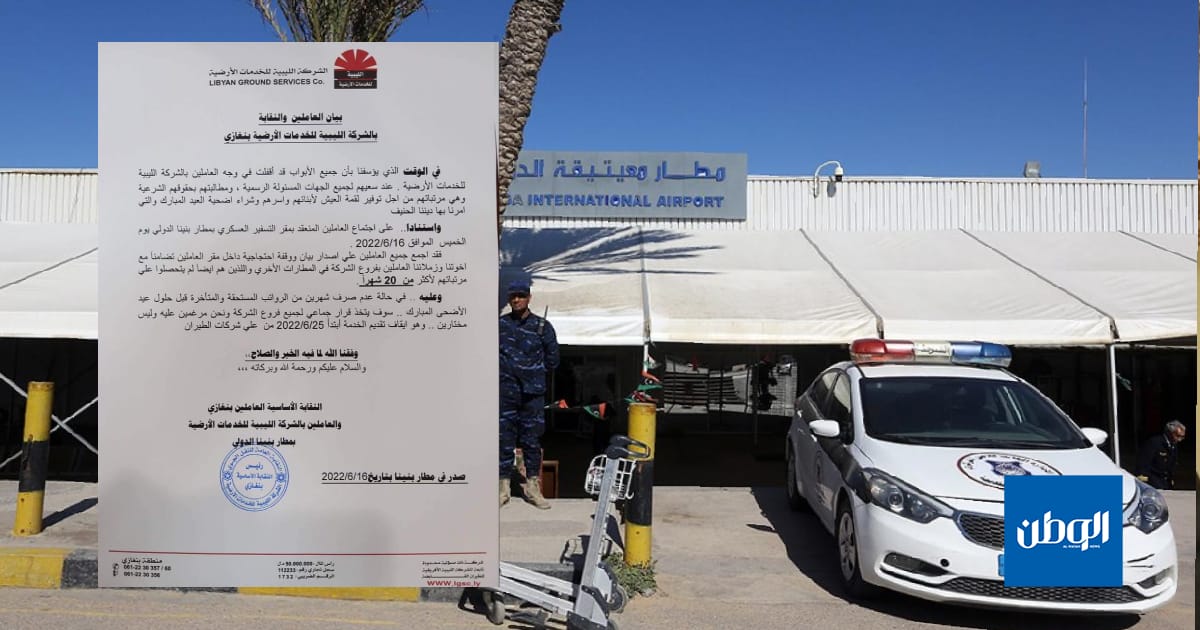 قال الموظفون في الشركة الليبية للخدمات الأرضية أنهم سيقومون بوقفة احتجاجية تضامنًا مع زملائهم في المطارات الأخرى؛ بسبب تأخر الرواتب.