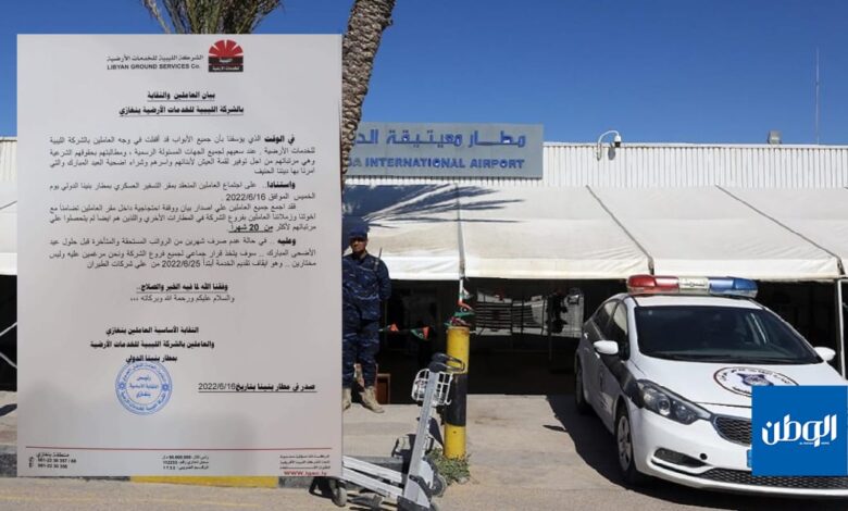 قال الموظفون في الشركة الليبية للخدمات الأرضية أنهم سيقومون بوقفة احتجاجية تضامنًا مع زملائهم في المطارات الأخرى؛ بسبب تأخر الرواتب.