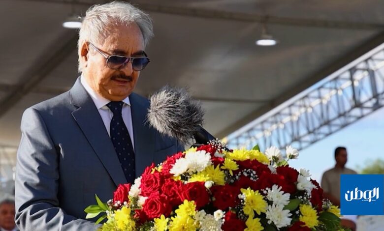 وأكد المشير أنّ الكرامة “لم تكن مشروعًا حكوميًا لإدارة شؤون البلاد وتلبية الاحتياجات اليومية وتقديم الخدمات بل كانت وسيلة لفتح الطريق أمام الشعب لبناء دولته على النمط الذي يناسبه”، مضيفًا أنّه “رغم إنجازات الكرامة، فمشروع بناء الدولة على أسس دستورية وإرادة شعبية لم ير النور حتى الآن”، وأنّ “الساحة السياسية لم تشهد إلا الإخفاقات وانسداد الأفق وتفاقم الصراع، ولا غرابة في ذلك مادامت الاتفاقات المحلية والدولية لم تكتسب شرعيتها من إرادة الشعب”.