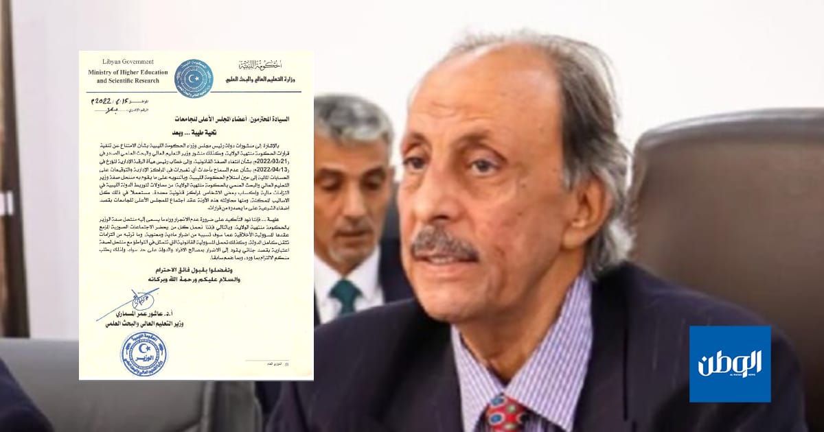 أكدت وزارة التعليم العالي والبحث العلمي على ضرورة عدم الانجرار وراء وزير الحكومة منتهية الولاية، وحضور الاجتماع الذي يحاول أن يعقده مع المجلس الأعلى للجامعات لكي تكون قراراته شرعية.