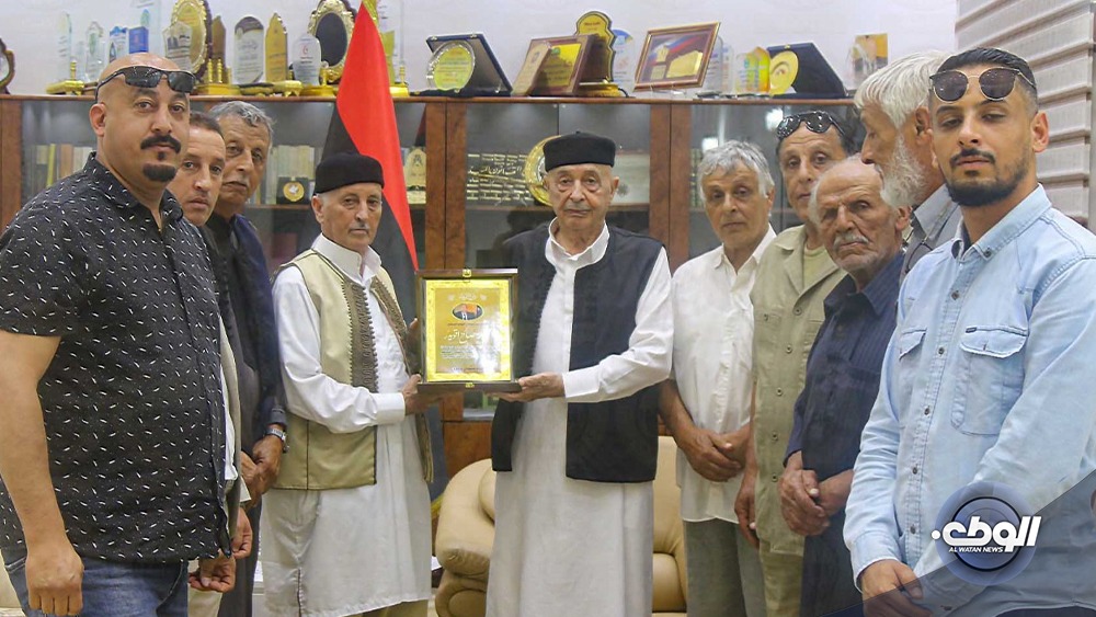 ووجه الأعيان والوفد المرافق له دعوة لرئيس مجلس النواب لزيارة منطقة قرنادة كما تقدموا بدرع للمستشار عقيلة صالح تقديراً لجهوده الوطنية ومواقفه الراسخة في خدمة الوطن.