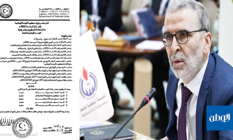 وكان رئيس الحكومة المنتهية عبدالحميد الدبيبة قد أصدر قرارا يقيل بموجبه مصطفى صنع الله ويكلف مجلس ادارة جديد برئاسة فرحات بن قدارة وعضوية كل من وكيل عام وزارة النفط والغاز، وحسين عبدالله، ومسعود سليمان، وأحمد عبدالله عمار.