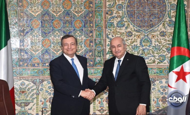 أكد الرئيس الجزائري “عبد المجيد تبون”، خلال لقائه رئيس الوزراء الإيطالي “ماريو دراغي”، على ضرورة بناء الليبيين لمؤسسات الدولة بأنفسهم، من خلال انتخابات نزيهة دون تدخلات خارجيّة.