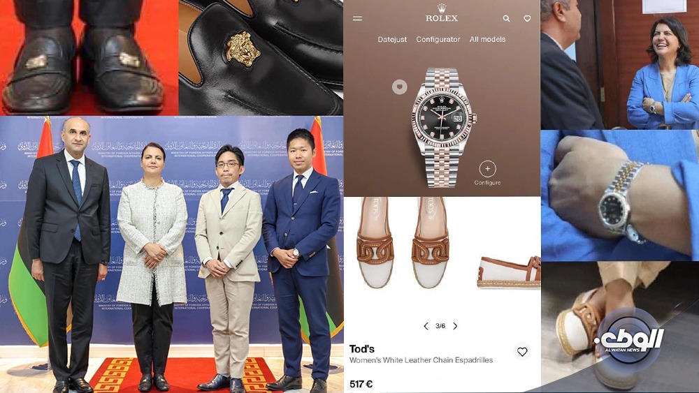 وفيما تقوم المنقوش بجولة تفقدية قبل يومين داخل أروقة مبنى وزارة الخارجية وصفه محرر مكتبها بانه لتعزيز التواصل والارتقاء بمستوى العمل وللاطلاع على احتياجات الموظفين، وآخر ما أُنجز حول خطة عمل الوزارة لعام 2022، آظهرت إحدى الصور أنها ترتدي ساعة رولكس ثمنها ( 37 ) ألف دولار، يقترب من 190 ألف دينار ليبي، إضافة إلى حقيبة من ماركت “ديور” ثمنها ( 5 ) الاف دولار، ما يقترب من 25 ألف دينار ليبي .