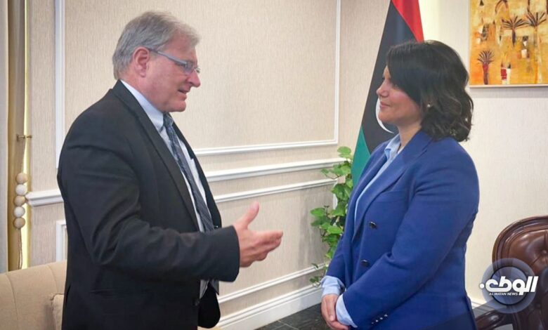 بحث السفير والمبعوث الأمريكي لدى ليبيا، ريتشارد نورلاند، مع وزيرة الخارجية في الحكومة منتهية الولاية، نجلاء المنقوش، في طرابلس، منح التأشيرات بين البلدين.