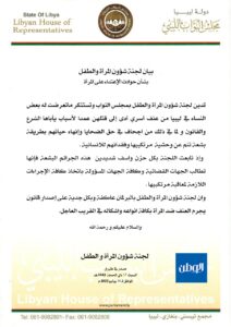 أدانت لجنة شؤون المرأة والطفل بمجلس النواب ما تعرضت له بعض النساء في ليبيا من عنف أسري أدى إلى قتلهن عمدا لأسباب يرفضها الشرع والقانون لما في ذلك من إجحاف في حق الضحايا وإنهاء حياتهم بطريقة بشعة تنم عن وحشية مرتكبيها وفقدانهم للإنسانية.