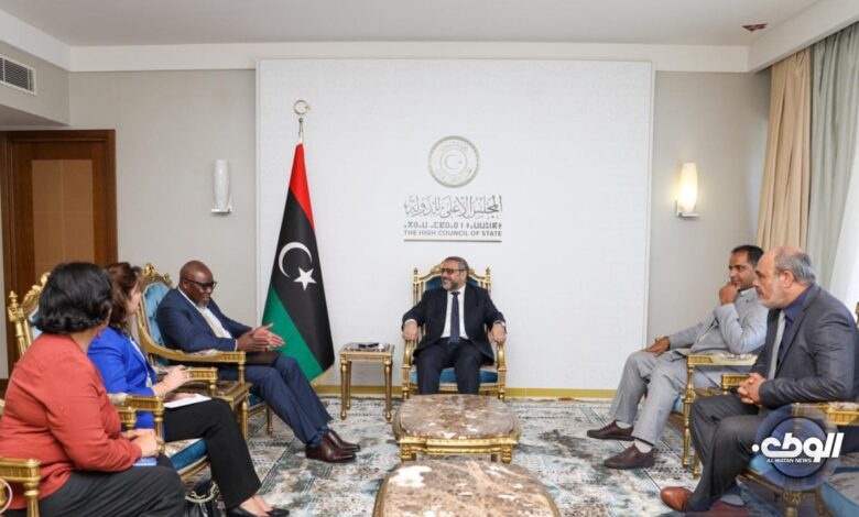 جاء ذلك خلال اجتماعه مع نائبه الأول، ناجي مختار، ومقرر المجلس، بلقاسم دبرز، والقائمَ بأعمال رئيس بعثة الأمم المتحدة للدعم في ليبيا، ريزدون زينينغا، بمقر المجلس في العاصمة طرابلس.