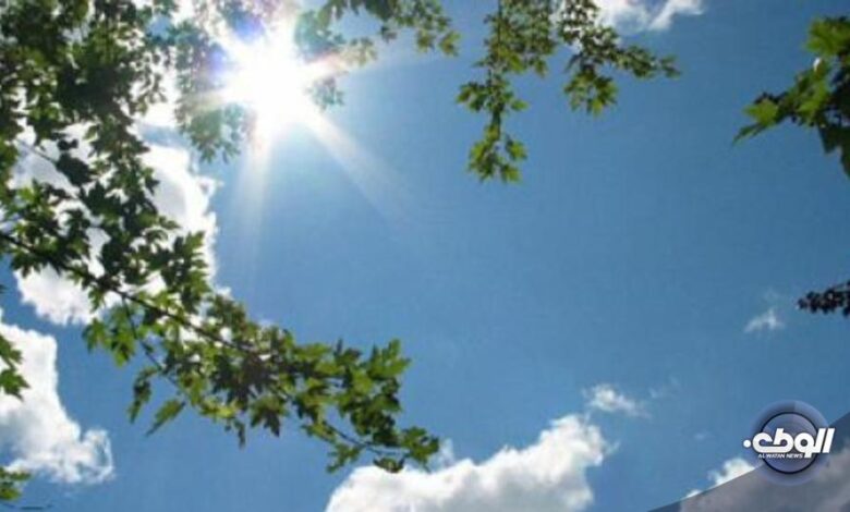 الخليج – سهل بنغازي حتى أمساعد، السماء صافية، والرياح شمالية إلى شمالية غربية، معتدلة السرعة، تنشط أحيانا على بعض المناطق، ودرجات الحرارة القصوى تتراوح بين 29 و32 درجة مئوية على الساحل، وبين 35 و38 درجة مئوية على الدواخل.