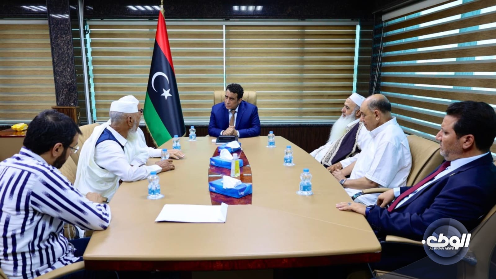 بحث رئيس المجلس الرئاسي، محمد المنفي، ظهر مع عدد من وجهاء وأعيان قبيلة المقارحة، ملف المصالحة الوطنية وتحقيق الاستقرار في كل مناطق ليبيا.