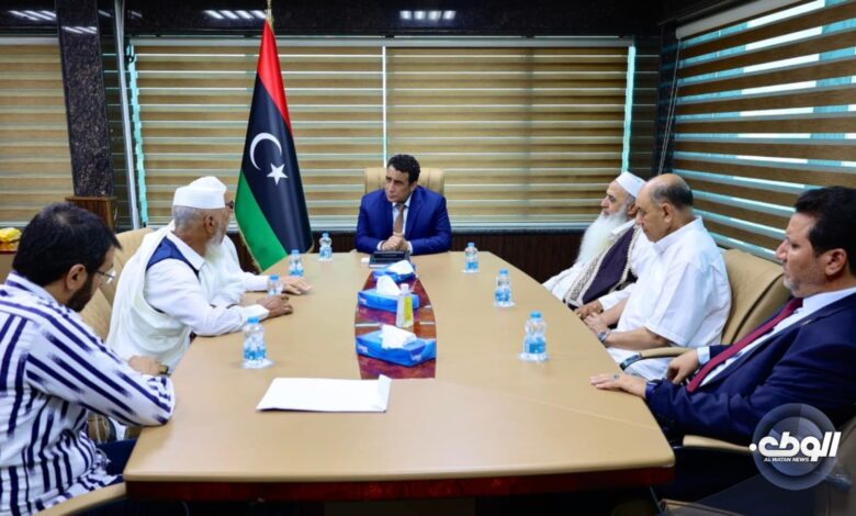 بحث رئيس المجلس الرئاسي، محمد المنفي، ظهر مع عدد من وجهاء وأعيان قبيلة المقارحة، ملف المصالحة الوطنية وتحقيق الاستقرار في كل مناطق ليبيا.
