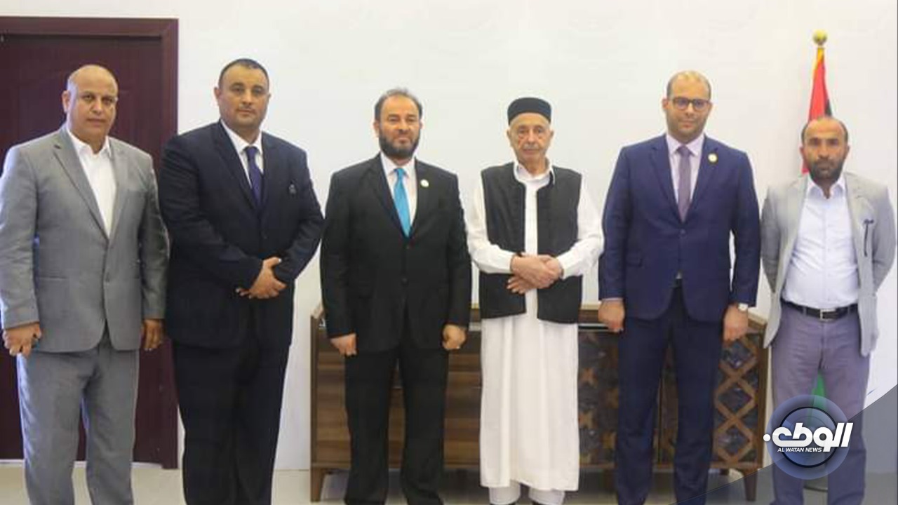 التقى رئيس مجلس النواب، المستشار عقيلة صالح، السبت، بعدد من أعضاء مجلس الدولة، بمكتبه في مدينة القبة.