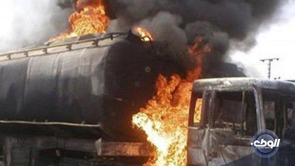 هذا وتوفي عدد من المواطنين إثر الحادثة، بينما أصيب العشرات، بعد أن اندلعت النيران في شاحنة وقود، خرجت عن مسار الطريق في بلدية “بنت بية”، قرب مدينة أوباري، فجر اليوم.