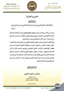 وتقدّم المجلس بتعازيه ومواساته للشعب الليبي، وأسر الضحايا.