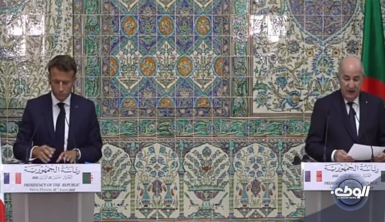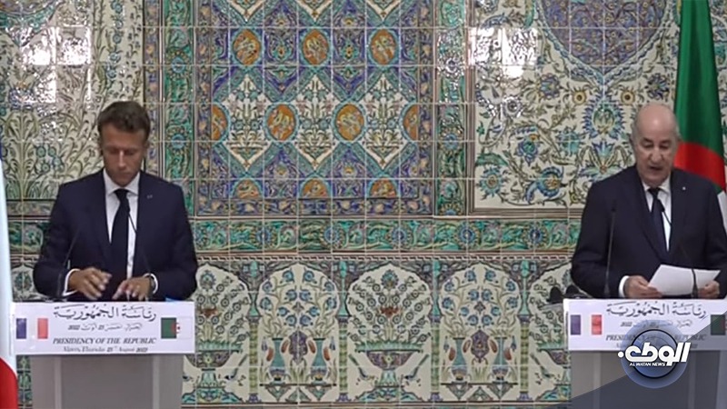 وقال تبون في المؤتمر الصحفي التالي للقاء، إنه بحث مع نظيره الفرنسي، آخر تطورات الأوضاع في ليبيا ومنطقة الساحل، وسبل تحقيق الاستقرار في المنطقة ككلّ.