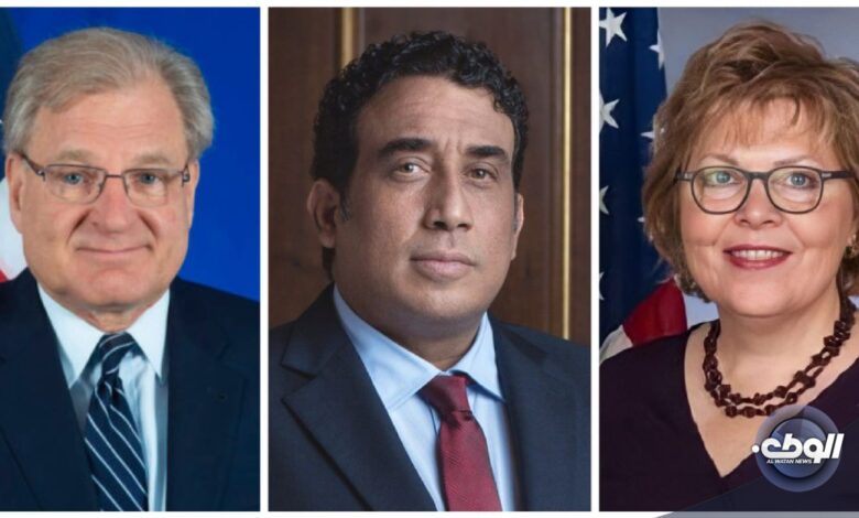 من جانبه أشاد المنفي، بدور الولايات المتحدة الأمريكية، لدعم السلام والاستقرار في ليبيا، للوصول إلى الانتخابات في أقرب الآجال، وفق قاعدة دستورية تتفق حولها كل الأطراف، وتحقق آمال قرابة 3 مليون ناخب سجلوا في سجلات المفوضية العليا للانتخابات.