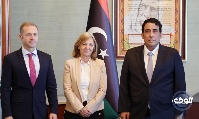 أكد المبعوث الفرنسي لدى ليبيا، بول سولير، السفيرة الفرنسية، بياتريس دوهيلين، خلال لقائهما السبت مع رئيس المجلس الرئاسي، محمد المنفي، على دعم الحوار بين مجلسي النواب والدولة لإجراء الانتخابات الرئاسية والبرلمانية في أسرع وقت ممكن.