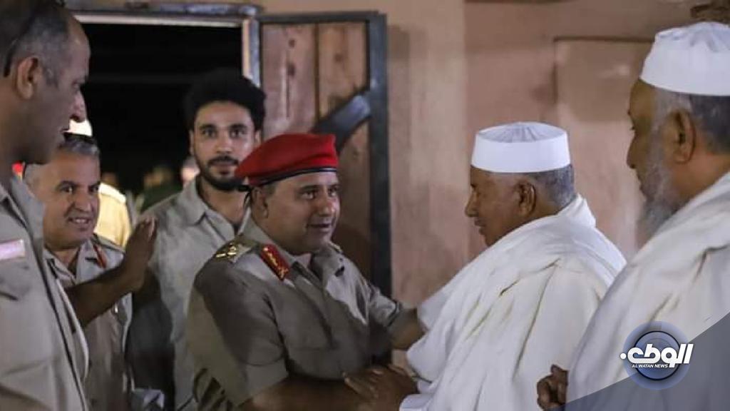 قدّم مدير مكتب القائد العام للقوات المسلحة، الفريق خيري التميمي، التعازي لأسرة الفقيد علي حمودة، المنسق الاجتماعي بالقيادة العامة لمنطقة وادي الشاطي خلال زيارته للنصب التذكاري لمعركة المحروقة.