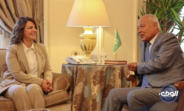 ناقشت وزيرة الخارجية بالحكومة المنتهية نجلاء المنقوش مع الأمين العام للجامعة العربية أحمد أبو الغيط مستجدات الأوضاع فى المنطقة العربية والساحة الليبية خصوصاً فيما يتعلق بالعملية السياسية بالبلاد، وإجراء الانتخابات وفق إطار دستوري متفق عليه في أقرب وقت ممكن.