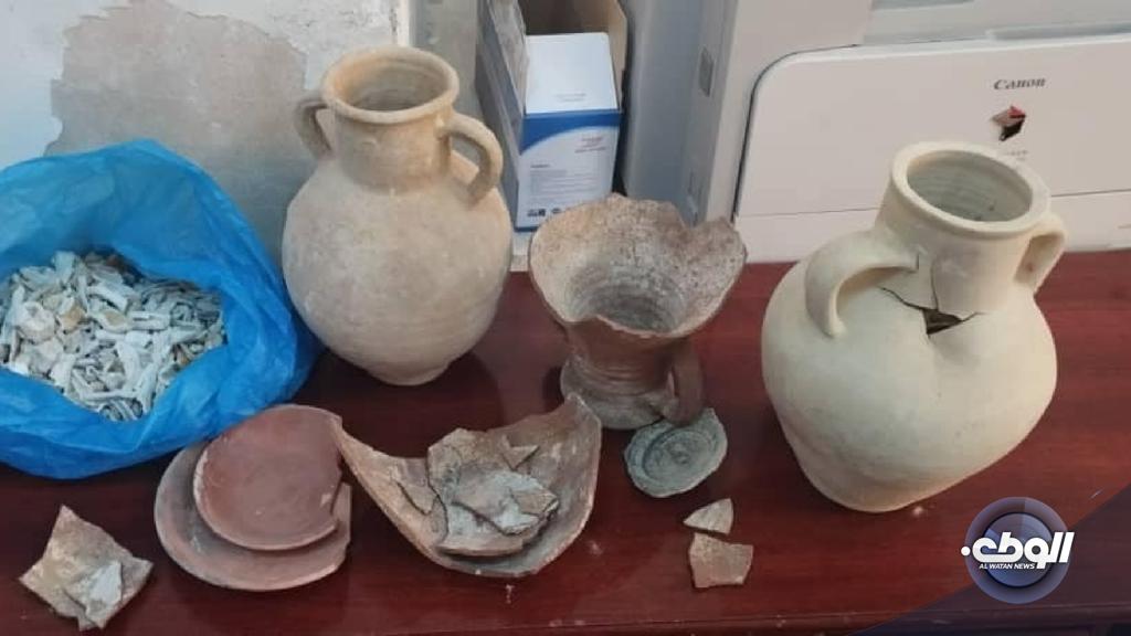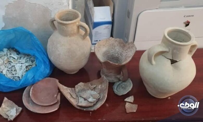 وتتكون القطع الأثرية من عدد ثلاثة جرار كانت تستخدم لحفظ رماد الموتى في العصر الروماني، واثنان من الصحون الأثرية بحسب جهاز الشرطة السياحية وحماية الآثار.