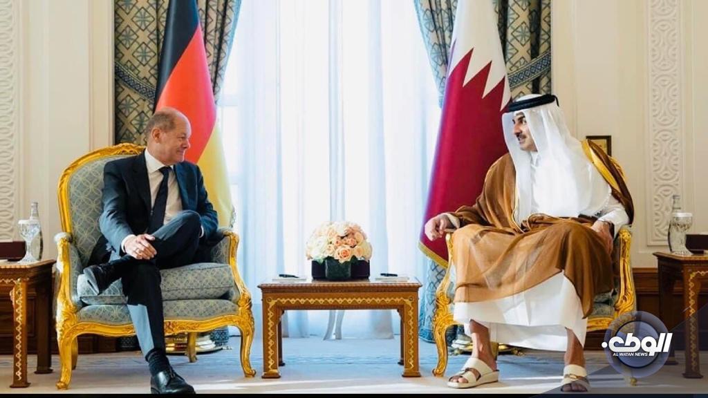 بحث أمير قطر تميم بن حمد، مع المستشار الألماني أولاف شولتس خلال زيارة الأخير للدوحة، أخر تطورات الأوضاع في ليبيا.