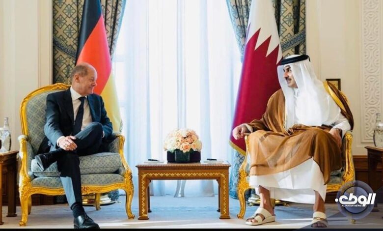 بحث أمير قطر تميم بن حمد، مع المستشار الألماني أولاف شولتس خلال زيارة الأخير للدوحة، أخر تطورات الأوضاع في ليبيا.