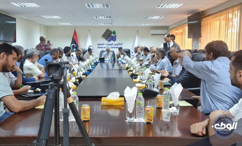 قالت المؤسسة الوطنية للنفط إنّ اجتماعًا بين رئيس وأعضاء المكتب التنفيذي للنقابة العامة للنفط، ورؤساء وأعضاء بعض نقابات الشركات النفطية قد عُقِدَ بقاعة الاجتماعات بشركة أكاكوس للعمليات النفطية يوم الأربعاء 28 سبتمبر الجاري.