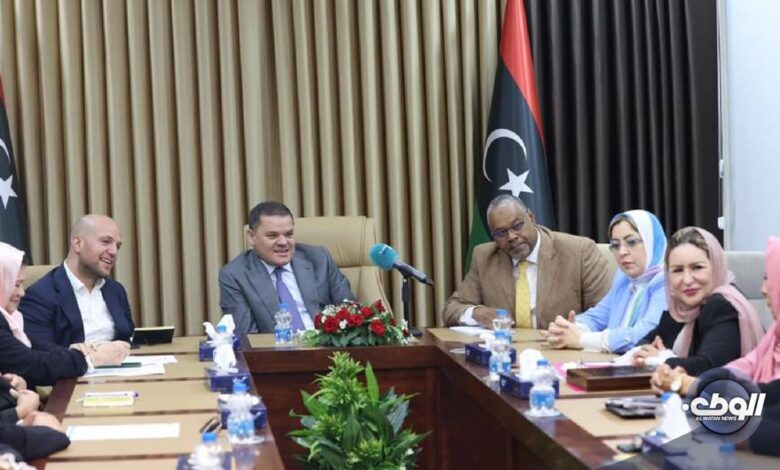 وبحسب بيان صادر عن مكتب الدبيبة، فقد استعرض الدبيبة “جهود الحكومة في معالجة أوضاع المرأة العاملة في القطاعات الخدمية والإنتاجية، مؤكدا ضرورة النظر في تنظيم العمل النسائي في ليبيا وفقا للهياكل الوطنية المعمول بها” وفق تعبير البيان.