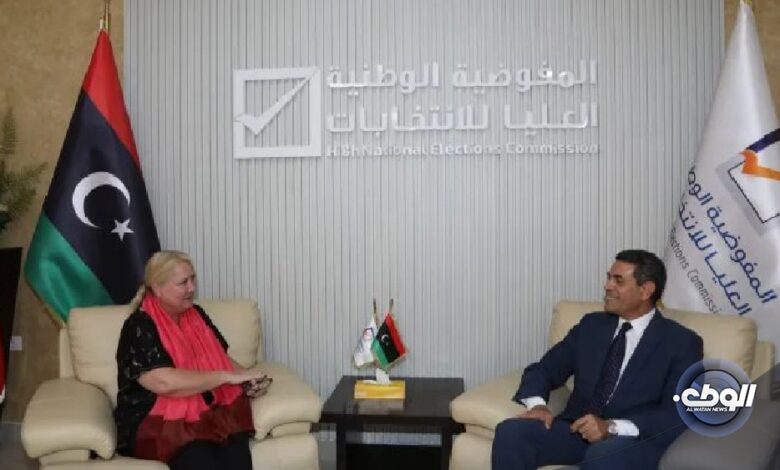 استقبل رئيس مجلس المفوضية الوطنية العليا للانتخابات عماد السائح اليوم الخميس، سفيرة دولة كندا لدى ليبيا إيزابيل سافرد والوفد المرافق لها بحضور عضو المجلس رباب حلب بديوان مجلس المفوضية.