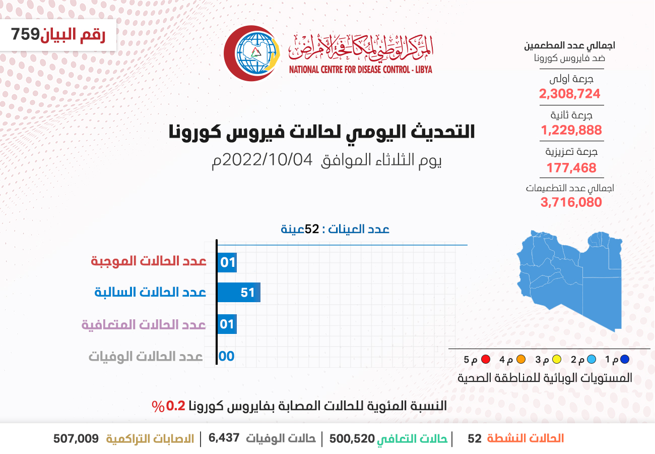 ليبيا تسجل إصابة واحدة بكورونا الثلاثاء