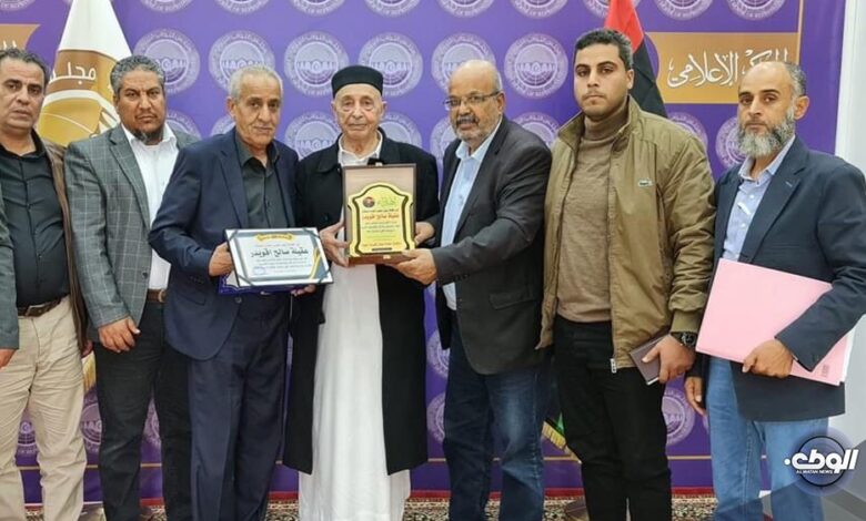 واختتم اللقاء بتكرم ممثلي النقابة العامة لعُمال كهرباء ليبيا للمستشار صالح بدرع وشهادة شكر؛ عرفانًا وتقديرًا بمواقفه الوطنية ودعمه للعاملين في مختلف القطاعات.