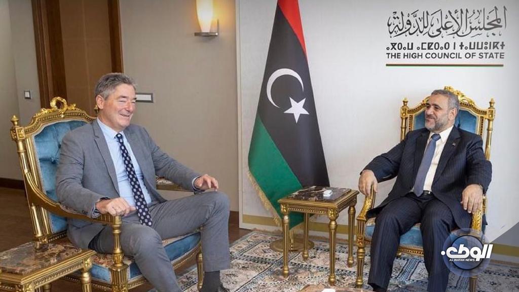 ناقش رئيس مجلس الدولة، خالد المشري القاعدة الدستورية، والقوانين الانتخابية مع السفير الألماني لدى ليبيا “ميخائيل أونماخت”.