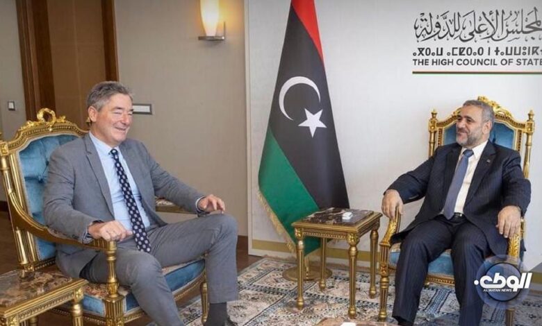 ناقش رئيس مجلس الدولة، خالد المشري القاعدة الدستورية، والقوانين الانتخابية مع السفير الألماني لدى ليبيا “ميخائيل أونماخت”.