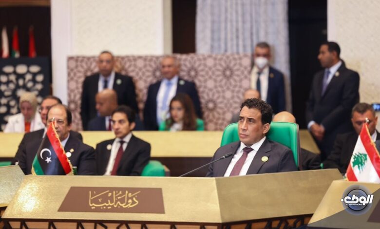 ودعا المنفي، في كلمته خلال القمة العربية المنعقدة في الجزائر، الدول العربية إلى تبني موقف موحد تجاه الأوضاع في ليبيا، وعلى رأسها رحيـل كافة المرتزقة والمقاتلين الأجانب والقوات الأجنبية عن الأراضي الليبية، ووقف التدخلات السلبية وغير البناءة، ودعم المسار الديمقراطي والتداول السلمي للسلطة.